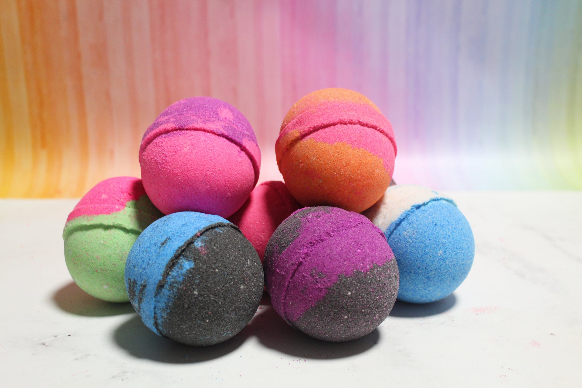 Ingredients - Sodium bicarbonate, Citric acid, Cream of tartar, Sodium Laurel Sulfoacetate (SLSA), Rice bran oil, Water Soluble Dye CI 42090, CI 19140, CI 15985, CI 17200, CI 45430,Β CI 16035, Aromatic fragrance oil, Mica powderΒ (skin safe), polysorbate 80, Isopropyl Alcohol, Water, Cosmetic glitterΒ