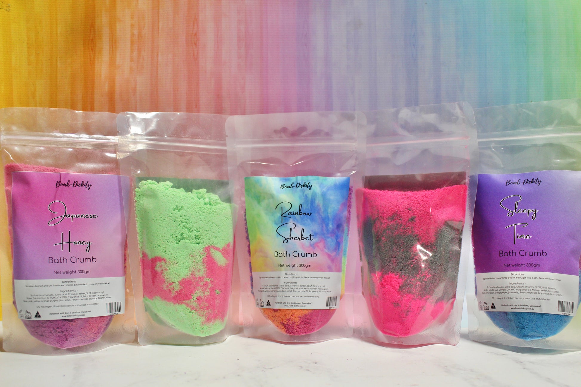 Our bath crumbs are crumbed up bath bomb mixes. These work exactly like a bath bomb, you can use as little or as much you wish within your bath. Crumbs are perfect for small baths as well as multiple baths. Mix and match and create your own unique bath art & scent.
